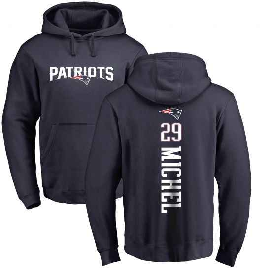 >NFL Nike New England Patriots #29 Sony Michel Navy Blue Backer Pullover Hoodie
