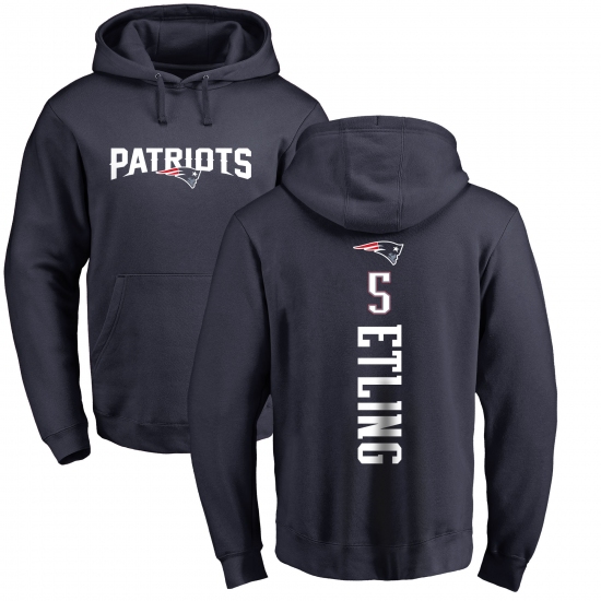 >NFL Nike New England Patriots #5 Danny Etling Navy Blue Backer Pullover Hoodie