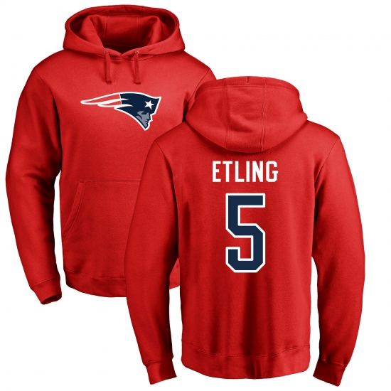 NFL Nike New England Patriots #5 Danny Etling Red Name & Number Logo Pullover Hoodie