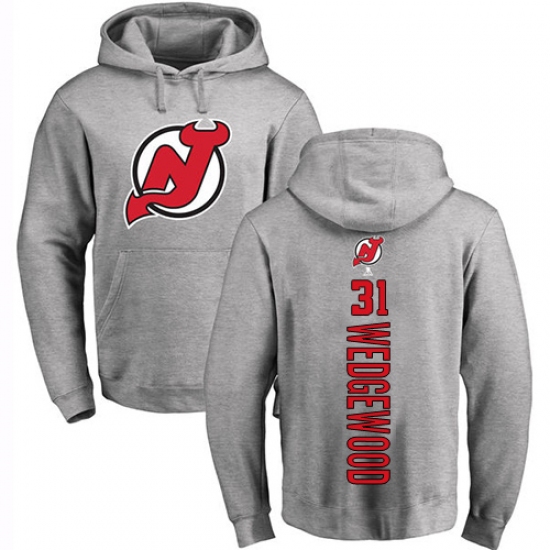 NHL Adidas New Jersey Devils #31 Scott Wedgewood Ash Backer Pullover Hoodie