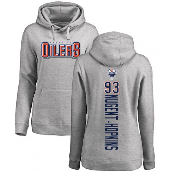 NHL Women's Adidas Edmonton Oilers #93 Ryan Nugent-Hopkins Ash Backer Pullover Hoodie