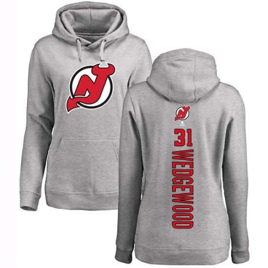 Home>NHL>New Devils Jersey>Scott Wedgewood>NHL Women's Adidas New Jersey Devils #31 Scott Wedgewood Ash Backer Pullover Hoodie