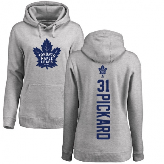 NHL Women's Adidas Toronto Maple Leafs #31 Calvin Pickard Ash Backer Pullover Hoodie
