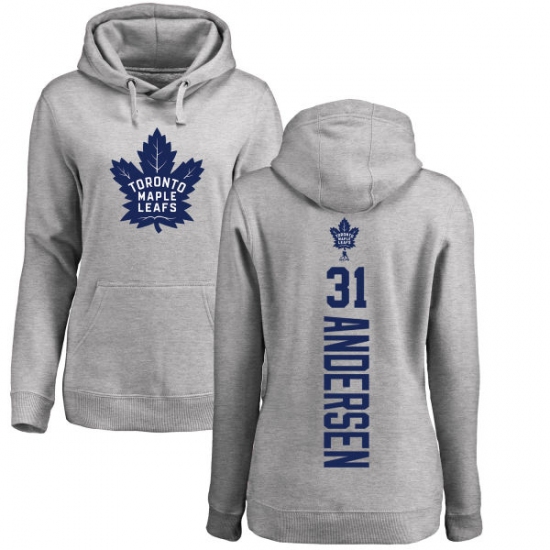 Home>NHL>Toronto Maple Leafs>Frederik Andersen>NHL Women's Adidas Toronto Maple Leafs #31 Frederik Andersen Ash Backer Pullover Hoodie