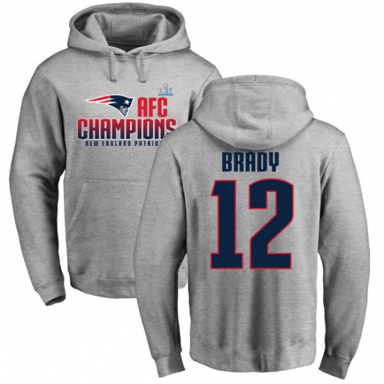 Nike New England Patriots #12 Tom Brady Heather Gray 2017 AFC Champions Pullover Hoodie