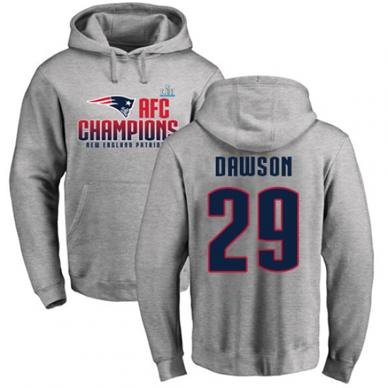 >Nike New England Patriots #29 Duke Dawson Heather Gray 2017 AFC Champions Pullover Hoodie