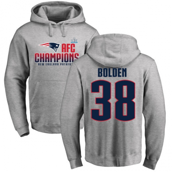 Home>NFL>New England Patriots>Brandon Bolden>Nike New England Patriots #38 Brandon Bolden Heather Gray 2017 AFC Champions Pullover Hoodie