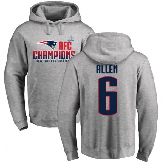 Home>NFL>New England Patriots>Ryan Allen>Nike New England Patriots #6 Ryan Allen Heather Gray 2017 AFC Champions Pullover Hoodie