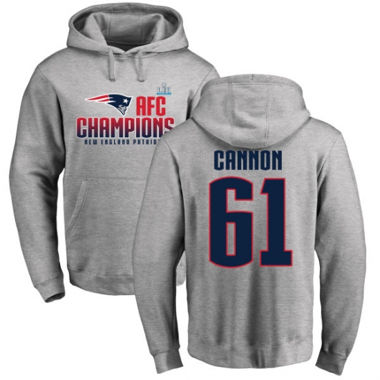 >Nike New England Patriots #61 Marcus Cannon Heather Gray 2017 AFC Champions Pullover Hoodie