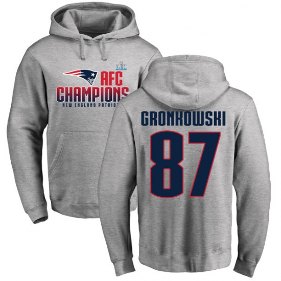 >Nike New England Patriots #87 Rob Gronkowski Heather Gray 2017 AFC Champions Pullover Hoodie