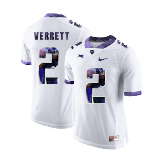 >TCU Horned Frogs 2 Jason Verrett White With Portrait Print College Football Limited Jersey