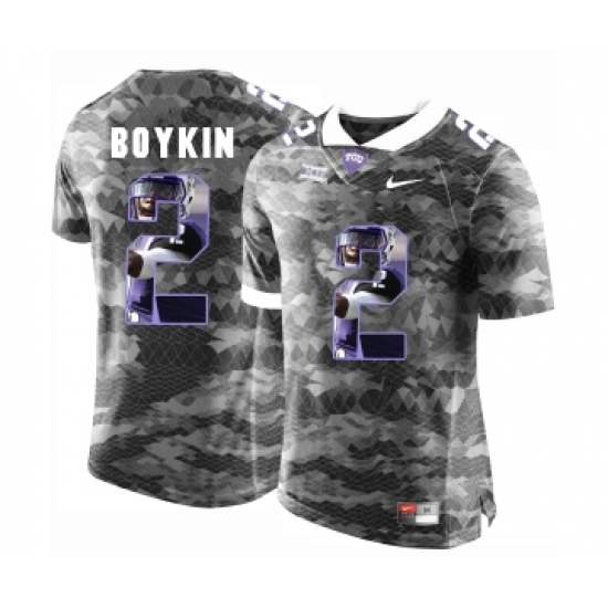 >TCU Horned Frogs 2 Trevone Boykin Gray With Portrait Print College Football Limited Jersey