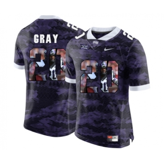 >TCU Horned Frogs 20 Deante Gray Purple College With Portrait Print Football Limited Jersey