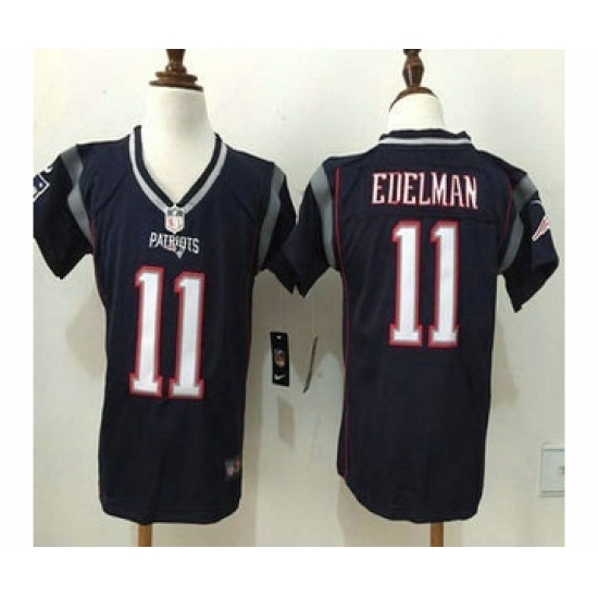 >Toddler New England Patriots #11 Julian Edelman Navy Blue Team Color 2015 NFL Nike Game Jersey