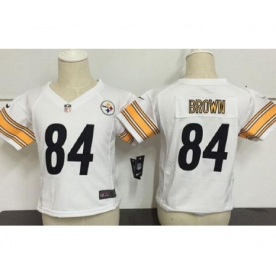 >Toddler Pittsburgh Steelers #84 Antonio Brown White Road Stitched NFL Nike Game Jersey