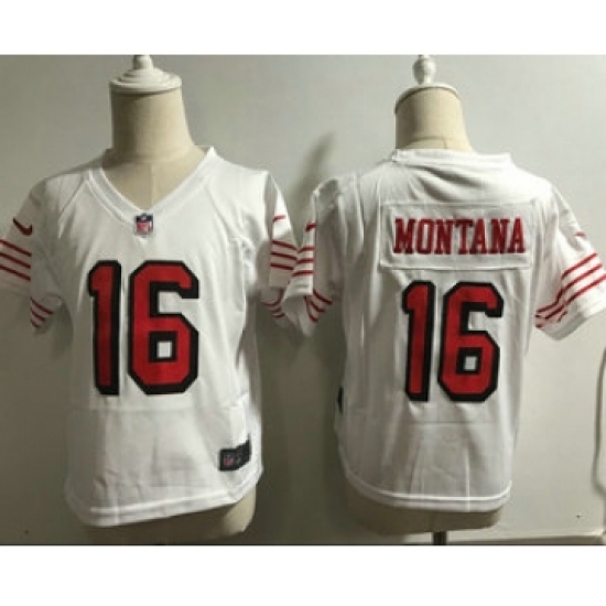 Toddler San Francisco 49ers #16 Joe Montana White 2018 Color Rush Vapor Untouchable Limited Jersey