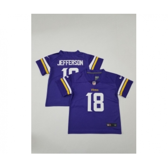 >Toddlers Minnesota Vikings #18 Justin Jefferson Purple 2020 Color Rush Stitched NFL Nike Limited Jersey