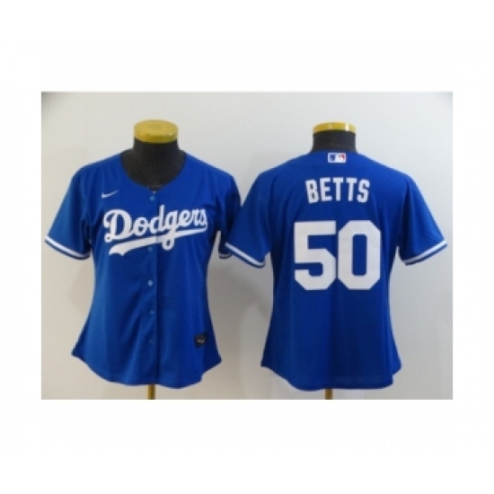 Women Los Angeles Dodgers #50 Mookie Betts Royal 2020 Cool Base Jersey