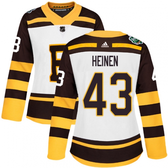 Women's Adidas Boston Bruins #43 Danton Heinen Authentic White 2019 Winter Classic NHL Jersey