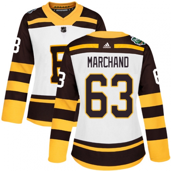 Women's Adidas Boston Bruins #63 Brad Marchand Authentic White 2019 Winter Classic NHL Jersey