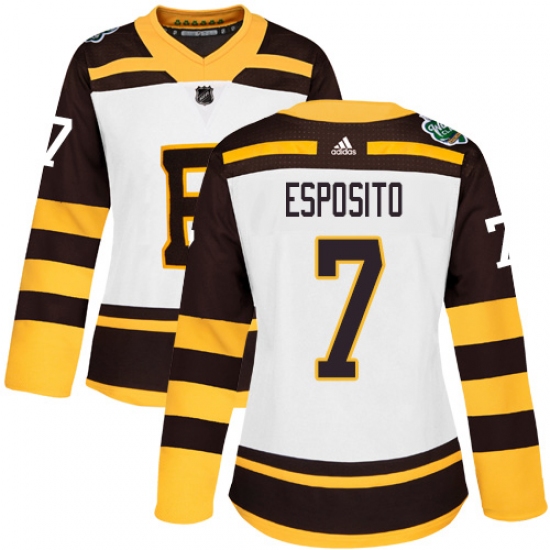 >Women's Adidas Boston Bruins #7 Phil Esposito Authentic White 2019 Winter Classic NHL Jersey