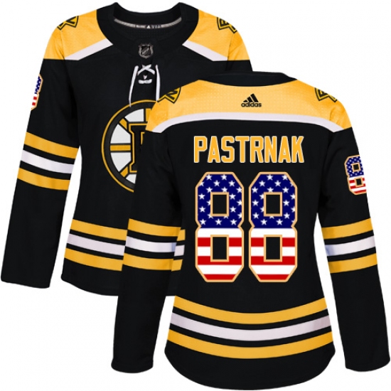 Women's Adidas Boston Bruins #88 David Pastrnak Authentic Black USA Flag Fashion NHL Jersey