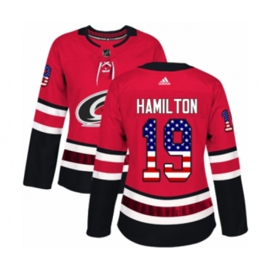 Women's Adidas Carolina Hurricanes #19 Dougie Hamilton Authentic Red USA Flag Fashion NHL Jersey