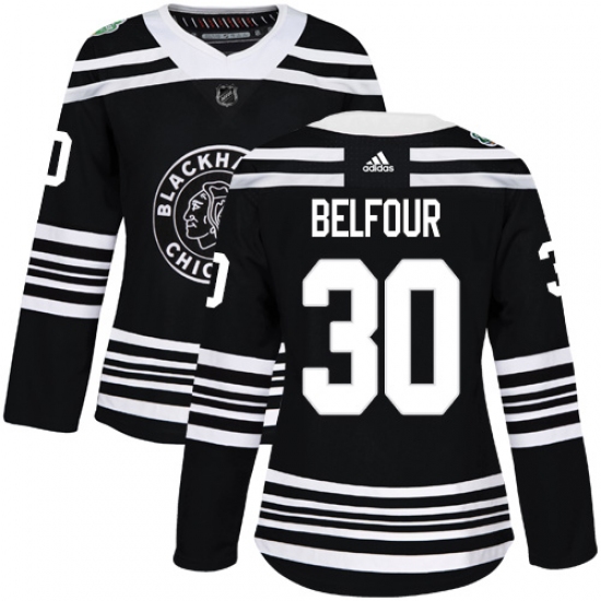 Women's Adidas Chicago Blackhawks #30 ED Belfour Authentic Black 2019 Winter Classic NHL Jersey
