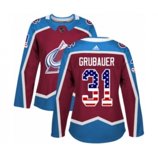 Women's Adidas Colorado Avalanche #31 Philipp Grubauer Authentic Burgundy Red USA Flag Fashion NHL Jersey