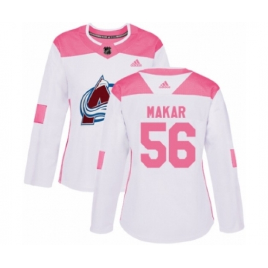 Women's Adidas Colorado Avalanche #56 Cale Makar Authentic White Pink Fashion NHL Jersey
