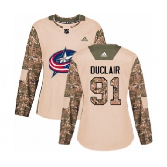 Women's Adidas Columbus Blue Jackets #91 Anthony Duclair Authentic Camo Veterans Day Practice NHL Jersey