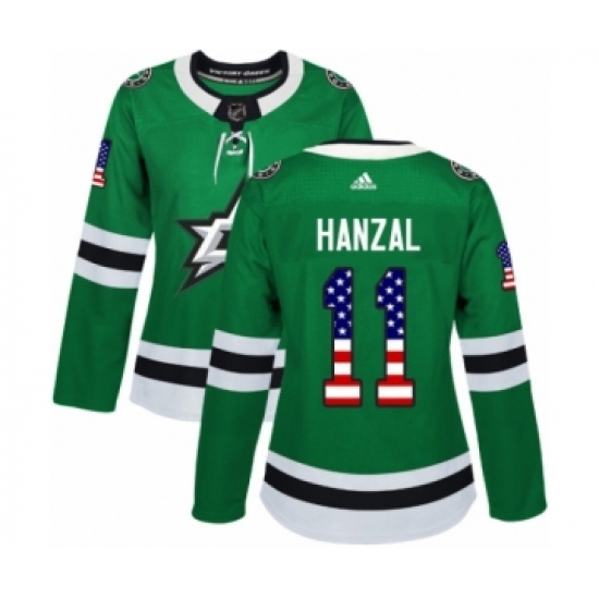 Women's Adidas Dallas Stars #11 Martin Hanzal Authentic Green USA Flag Fashion NHL Jersey