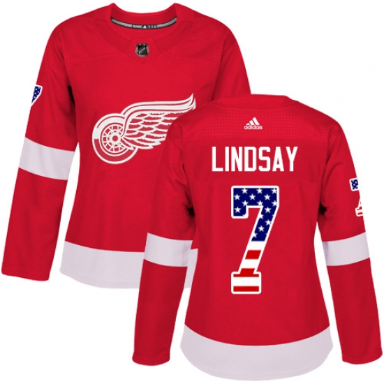 Home>NHL>Detroit Red Wings>Ted Lindsay>Women's Adidas Detroit Red Wings #7 Ted Lindsay Authentic Red USA Flag Fashion NHL Jersey