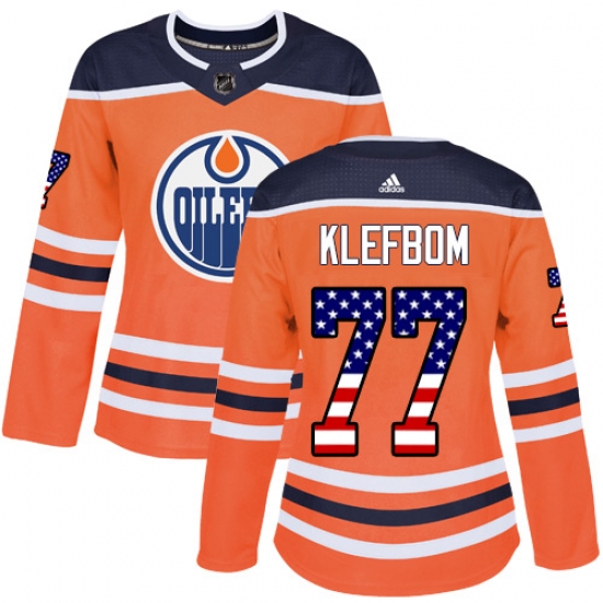 Home>NHL>Edmonton Oilers>Oscar Klefbom>Women's Adidas Edmonton Oilers #77 Oscar Klefbom Authentic Orange USA Flag Fashion NHL Jersey