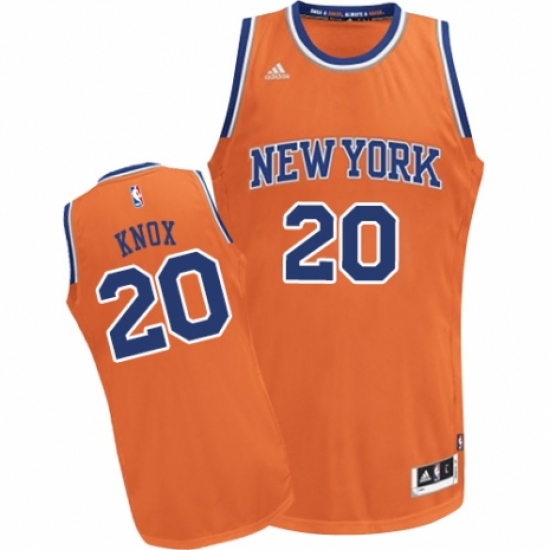 >Women's Adidas New York Knicks #20 Kevin Knox Swingman Orange Alternate NBA Jersey