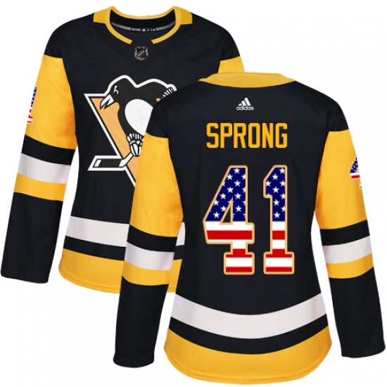 Home>NHL>Pittsburgh Penguins>Daniel Sprong>Women's Adidas Pittsburgh Penguins #41 Daniel Sprong Authentic Black USA Flag Fashion NHL Jersey