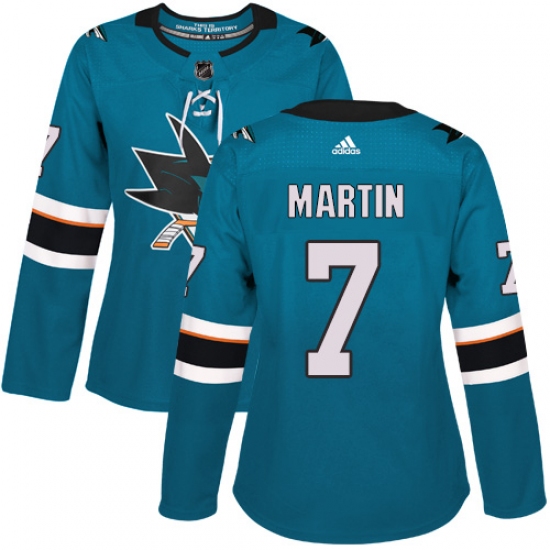 Home>NHL>San Jose Sharks>Paul Martin>Women's Adidas San Jose Sharks #7 Paul Martin Authentic Teal Green Home NHL Jersey