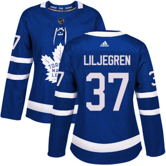 >Women's Adidas Toronto Maple Leafs #37 Timothy Liljegren Authentic Royal Blue Home NHL Jersey