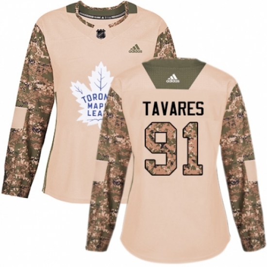 Women's Adidas Toronto Maple Leafs #91 John Tavares Authentic Camo Veterans Day Practice NHL Jersey