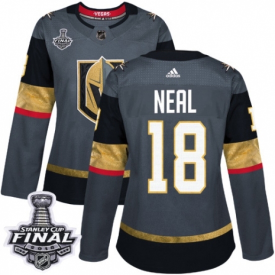 >Women's Adidas Vegas Golden Knights #18 James Neal Authentic Gray Home 2018 Stanley Cup Final NHL Jersey