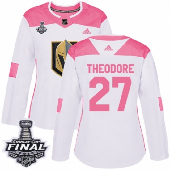 Women's Adidas Vegas Golden Knights #27 Shea Theodore Authentic White/Pink Fashion 2018 Stanley Cup Final NHL Jersey
