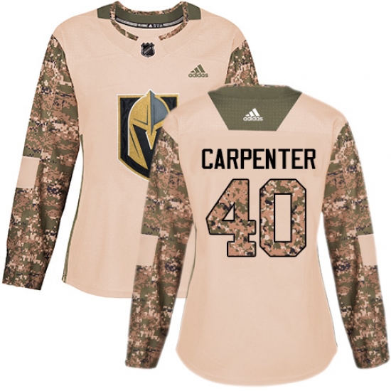 >Women's Adidas Vegas Golden Knights #40 Ryan Carpenter Authentic Camo Veterans Day Practice NHL Jersey