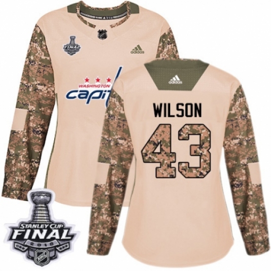Women's Adidas Washington Capitals #43 Tom Wilson Authentic Camo Veterans Day Practice 2018 Stanley Cup Final NHL Jersey