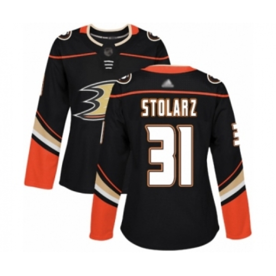Women's Anaheim Ducks #31 Anthony Stolarz Authentic Black Home Hockey Jersey