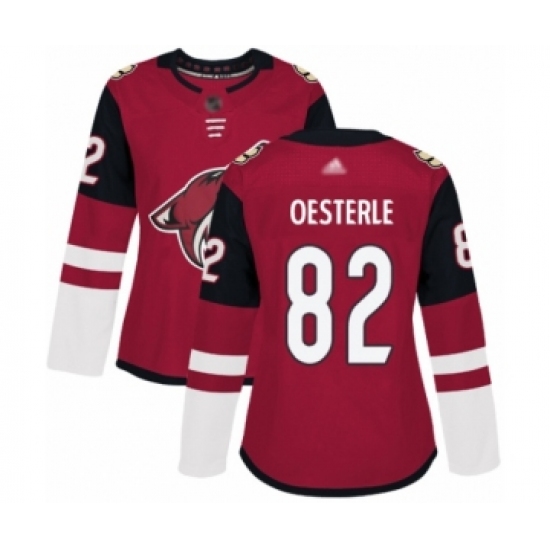 >Women's Arizona Coyotes #82 Jordan Oesterle Authentic Burgundy Red Home Hockey Jersey