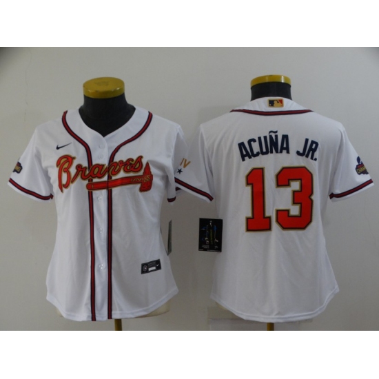 Women's Atlanta Braves #13 Ronald Acuna Jr. Nike White 2022 Gold Program Authentic Player Jersey