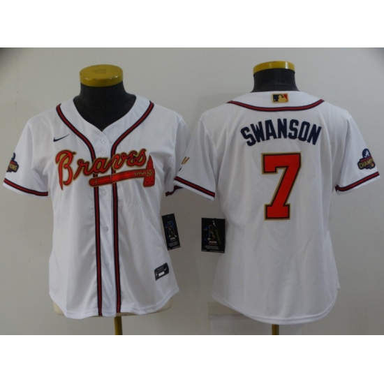 Women's Atlanta Braves #7 Dansby Swanson Nike White 2022 Gold Program Authentic Player Jersey