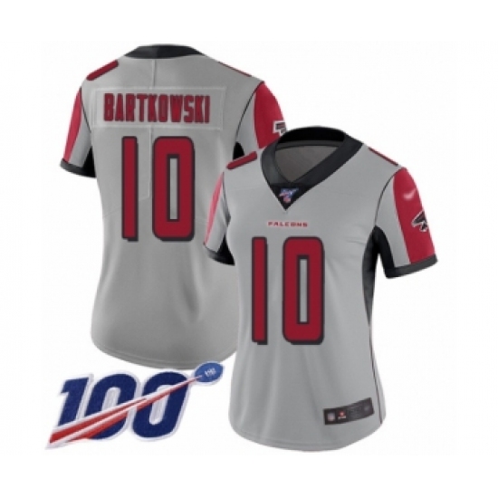 >Women's Atlanta Falcons #10 Steve Bartkowski Limited Silver Inverted Legend 100th Season Football Jersey