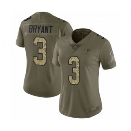>Women's Atlanta Falcons #3 Matt Bryant Limited Olive Camo 2017 Salute to Service Football Jersey