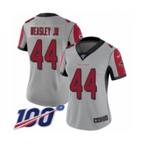 Women's Atlanta Falcons #44 Vic Beasley Limited Silver Inverted Legend 100th Season Football Jersey